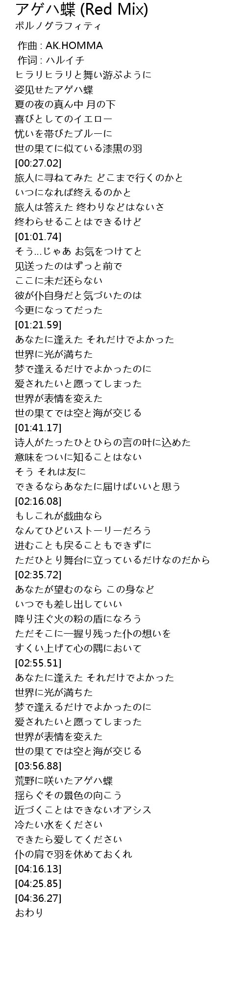 | [03:57.59] | 荒野に咲いたアゲハ蝶 |