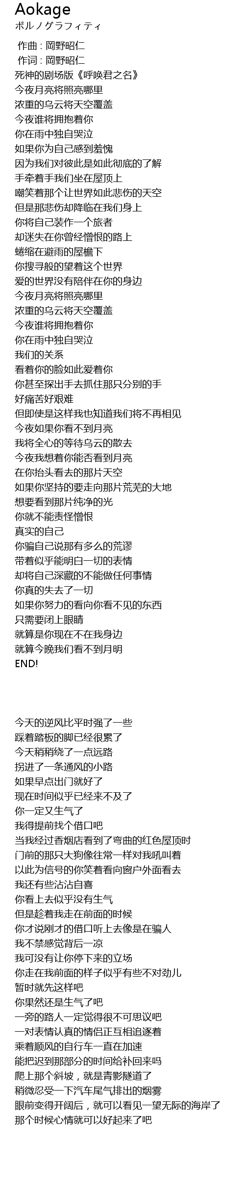 | [00:00.00] | 作曲 : 岡野昭仁 |