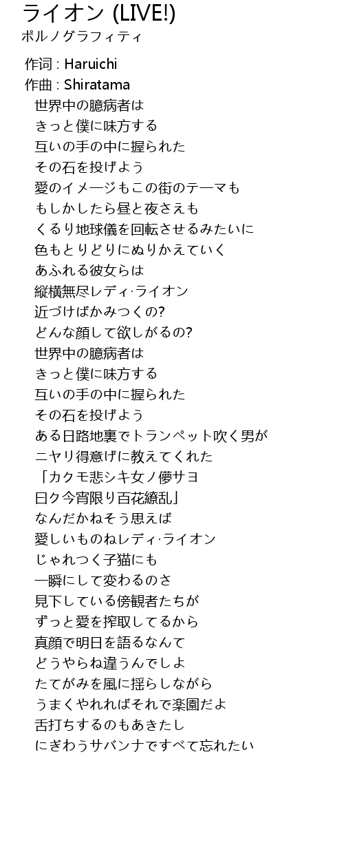 | [02:33.66] | 愛しいものねレディ·ライオン |