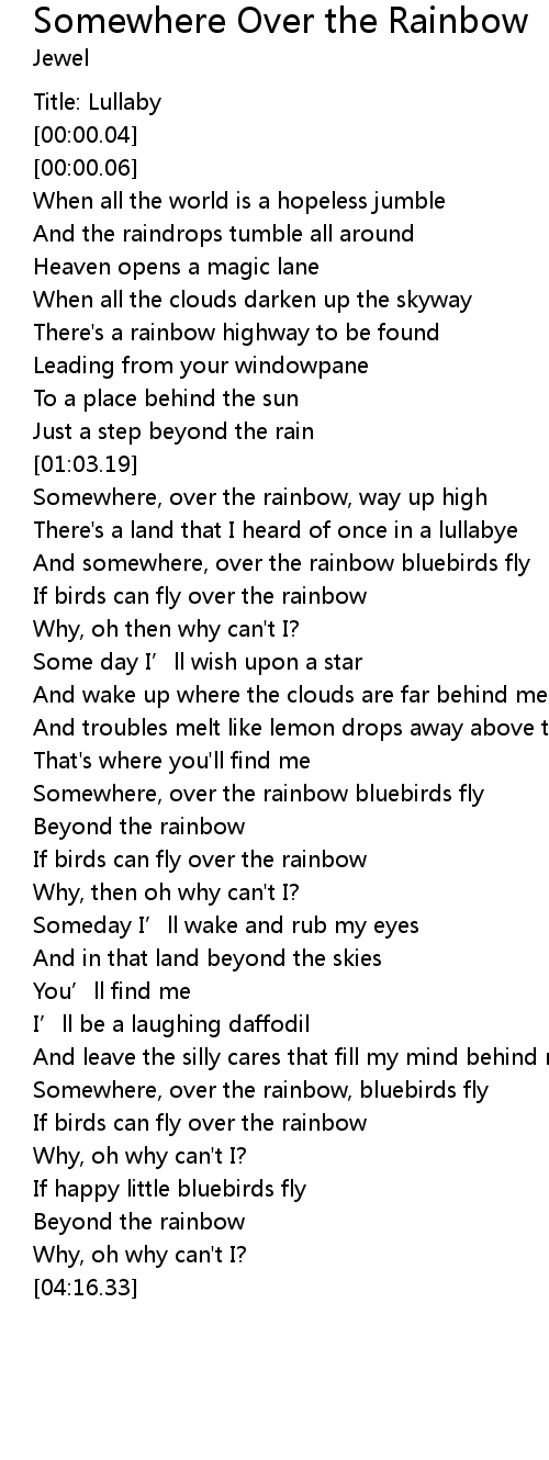 | [03:22.78] | Somewhere, over the rainbow, bluebirds fly |