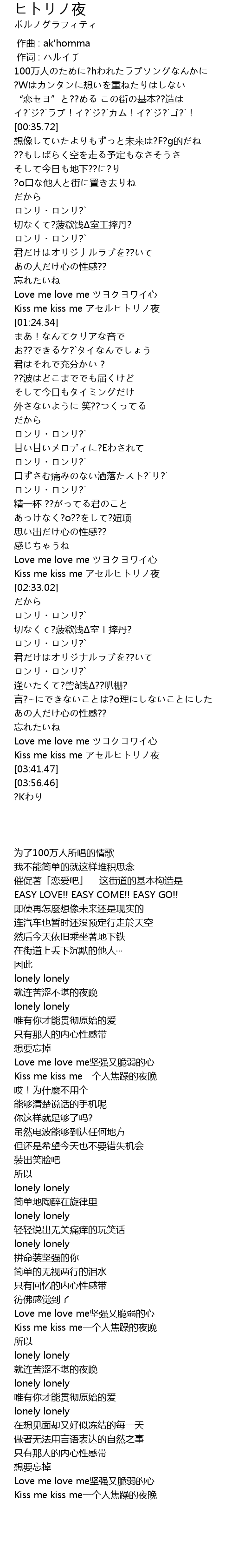 | [03:37.41] | Kiss me kiss me アセルヒトリノ夜 |