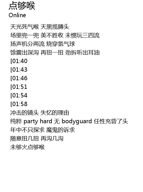 | [01:27] | 纯粹 party hard 无 bodyguard 任性充昏了头 |