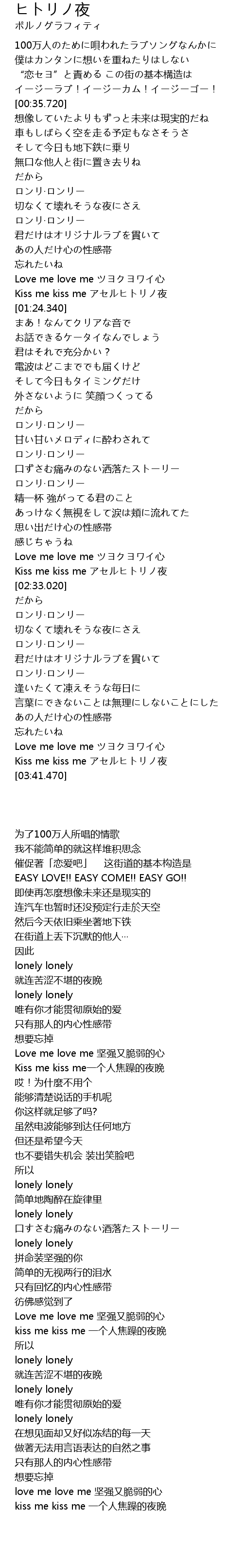 | [03:37.410] | Kiss me kiss me アセルヒトリノ夜 |