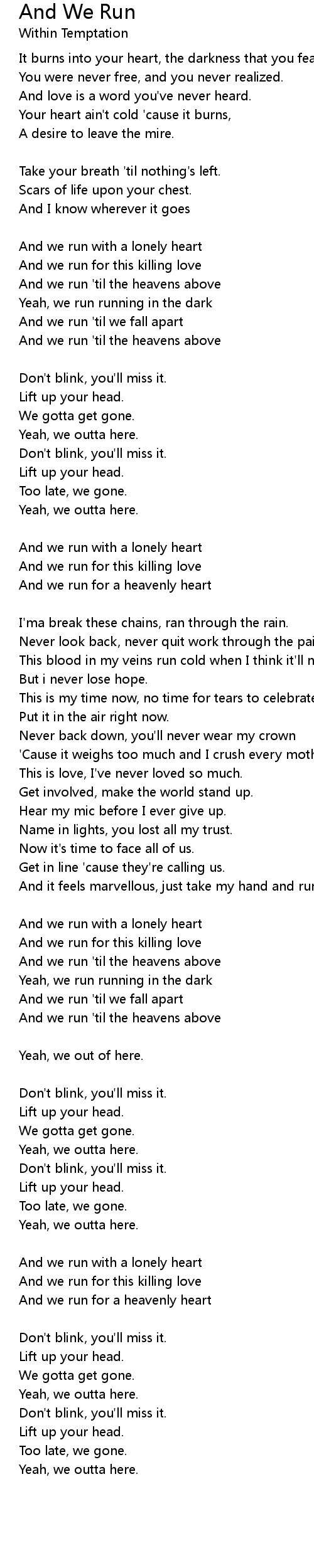 And we run 'til the heavens above |