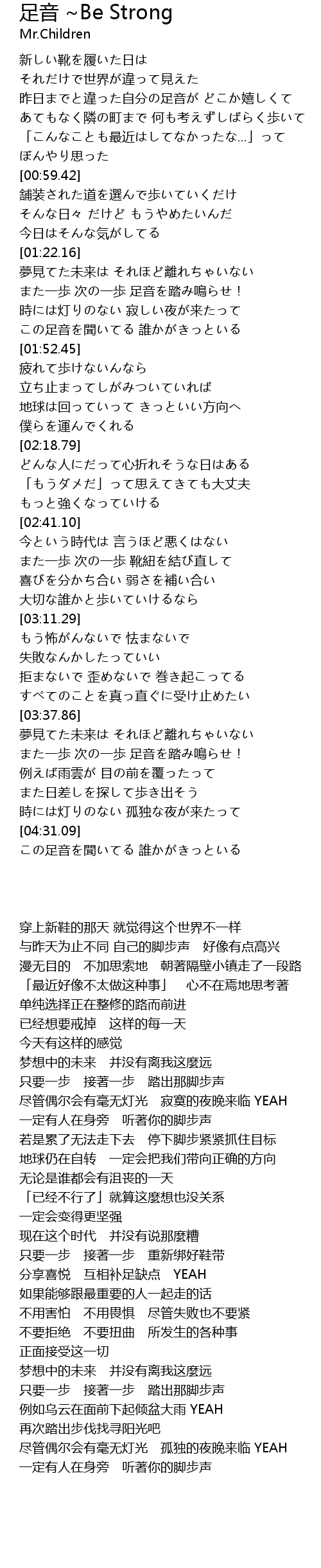 | [04:04.37] | また一歩 次の一歩 足音を踏み鳴らせ! |