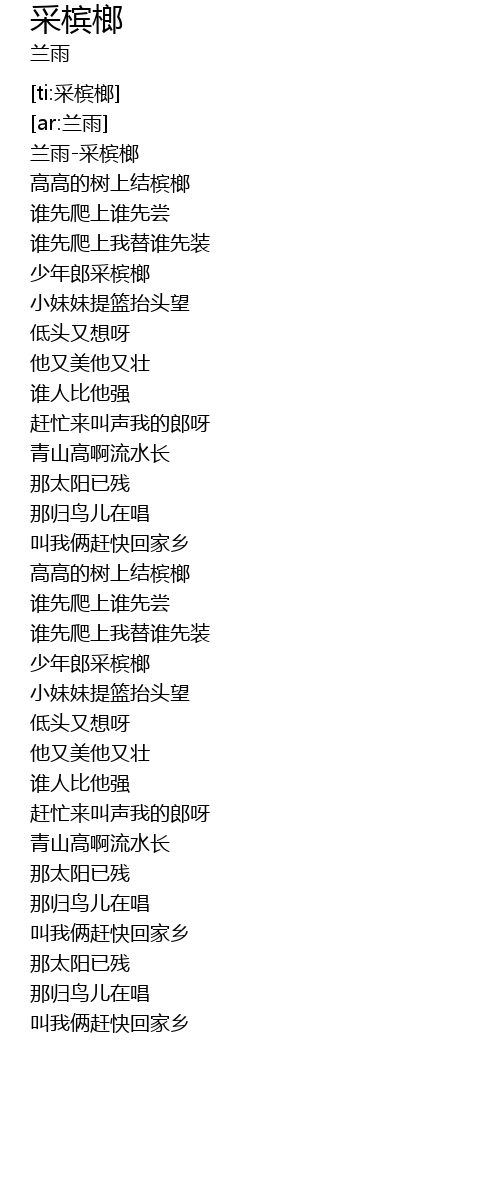 | [02:22.186] | 赶忙来叫声我的郎呀 |