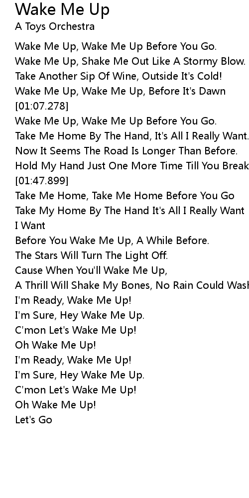 Wake Me Up, Wake Me Up, Before It's Dawn |