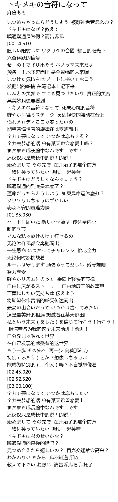 | [00:45.120] | トキメキの音符になって 化成心跳的音符 |