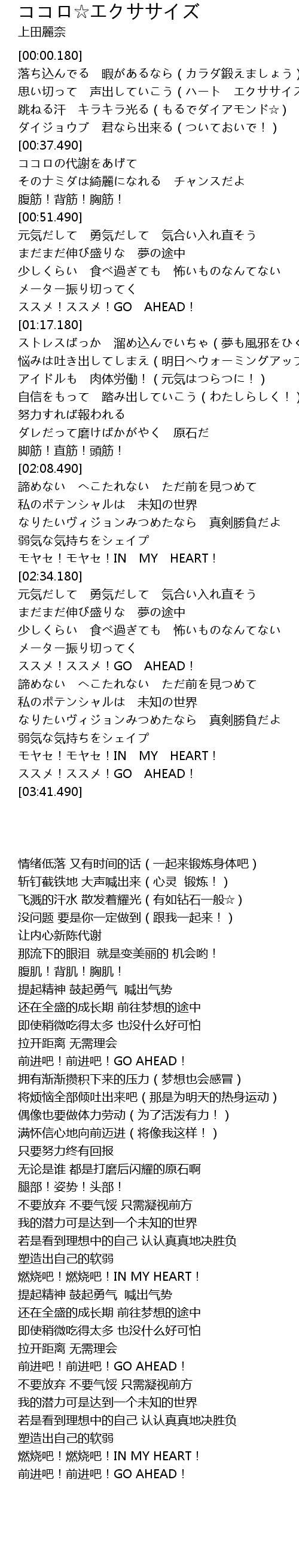 | [00:19.490] | 思い切って 声出していこう(ハート エクササイズ!) |