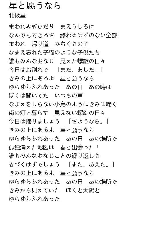 | [2:18] | きみの上にあるよ 星と願うなら |