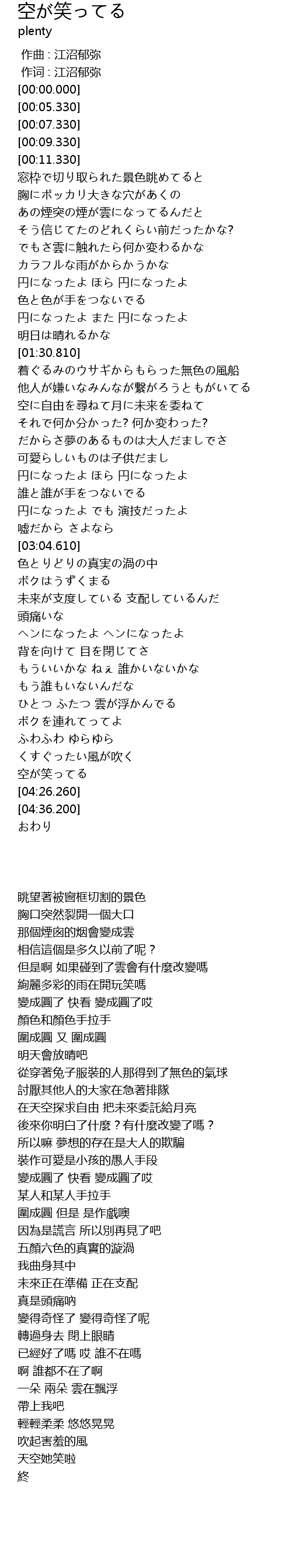 | [04:20.070] | 空が笑ってる |