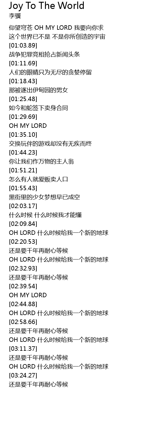 | [03:05.52] | OH LORD 什么时候给我一个新的地球 |