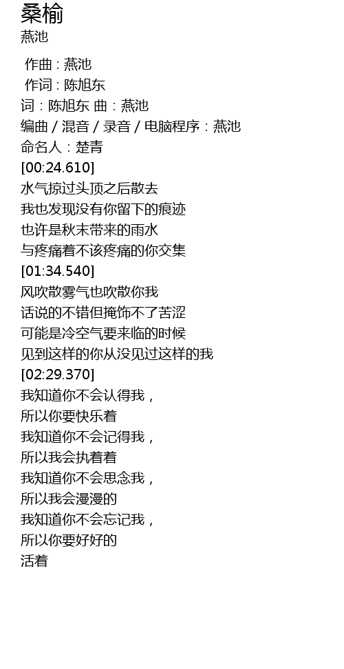 | [00:18.000] | 词:陈旭东 曲:燕池 |