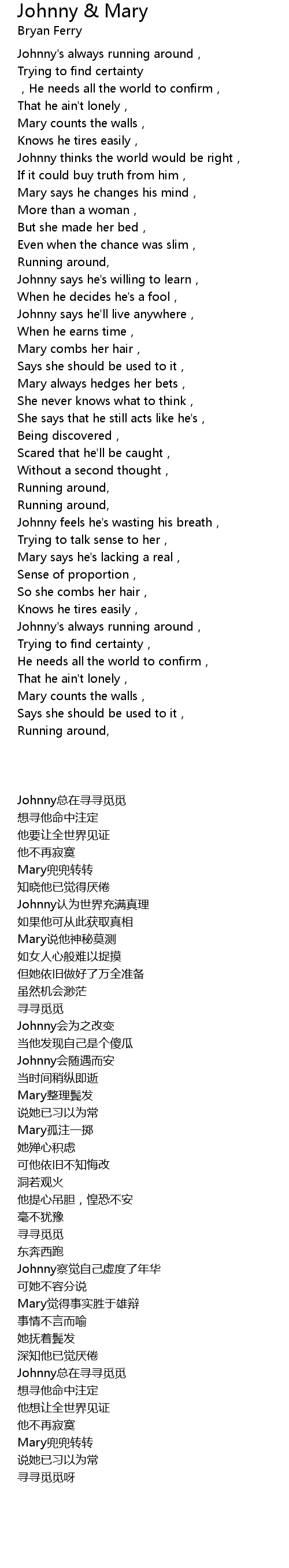 | Song | Johnny & Mary |