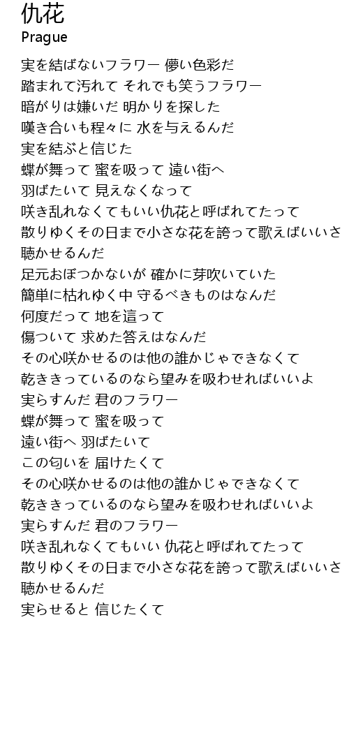 | 散りゆくその日まで小さな花を誇って歌えばいいさ 聴かせるんだ | |