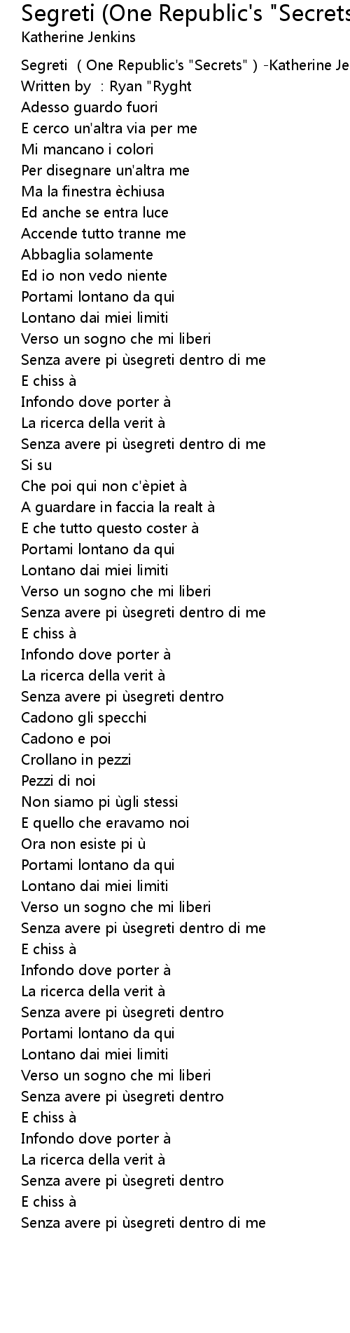 | [00:00.301] | Segreti One Republic' s " Secrets" Katherine Jenkins |