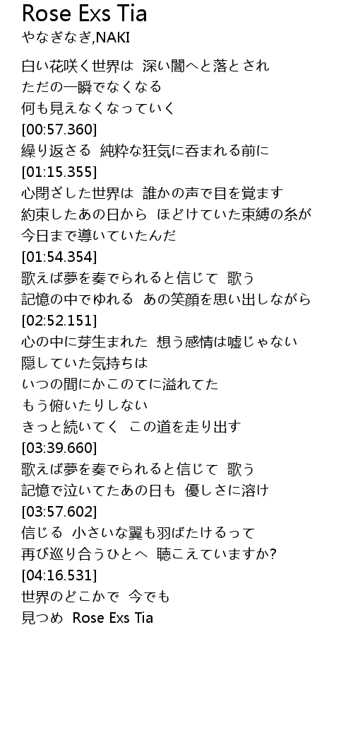 | [04:22.280] | 見つめ Rose Exs Tia |