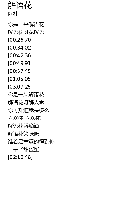| [02:37.66][00:42.36] | 解语花娇滴滴 |
