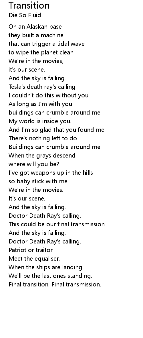 Final transition. Final transmission. |