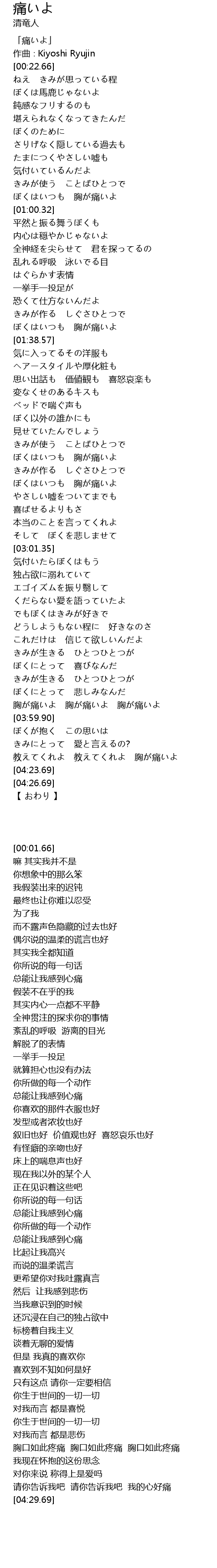 | [03:50.78] | 胸が痛いよ 胸が痛いよ 胸が痛いよ |