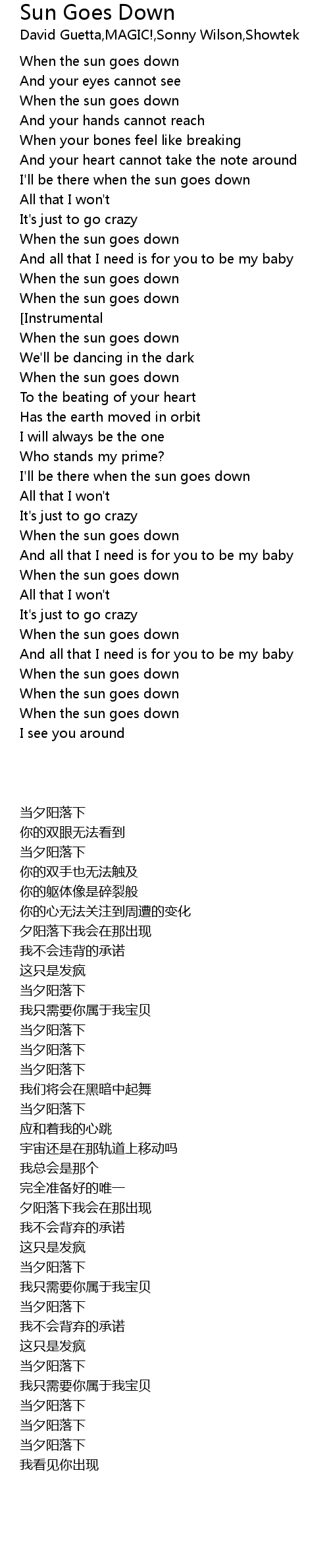 When the sun goes down |