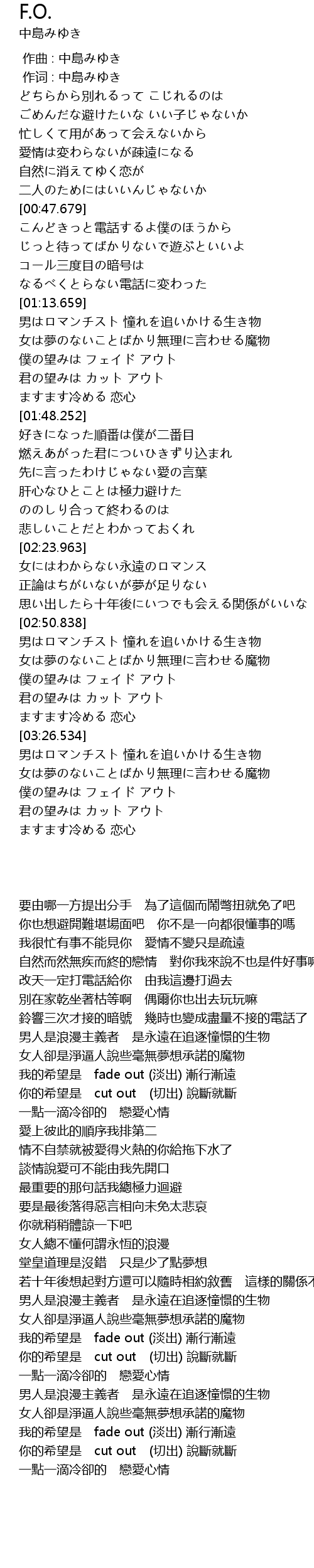 | [03:11.315] | 僕の望みは フェイド アウト |