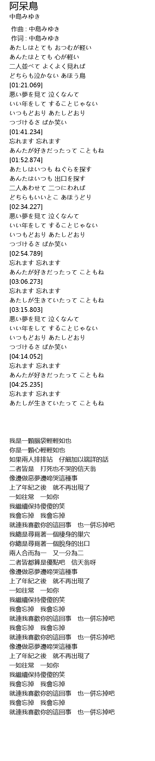作词 : 中島みゆき |