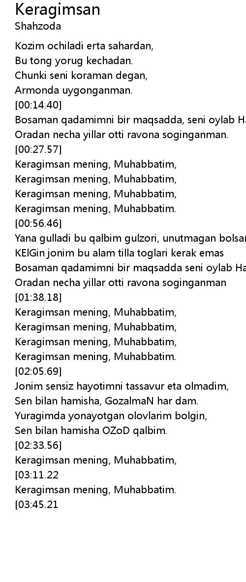 Jonim sensiz hayotimni tassavur eta olmadim, |