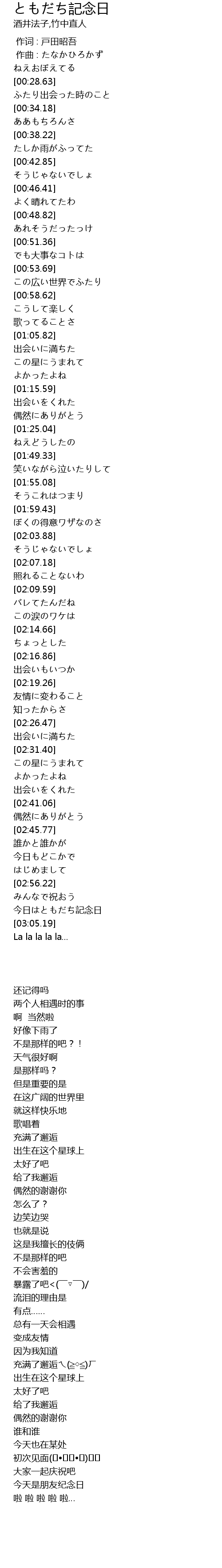 | [03:01.29] | 今日はともだち記念日 |