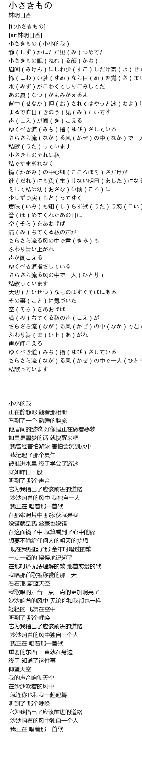 | [00:02.963] | xiǎo xiǎo xiǎo de wǒ |