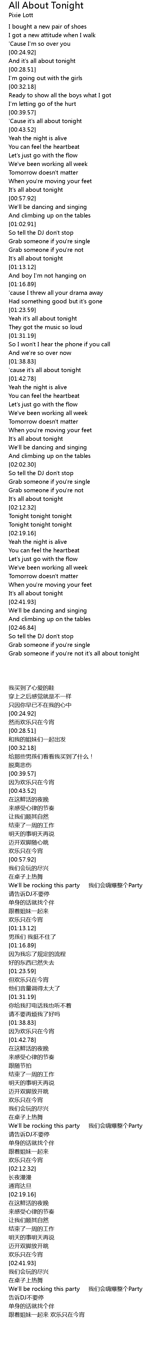 Grab someone if you're not it's all about tonight |