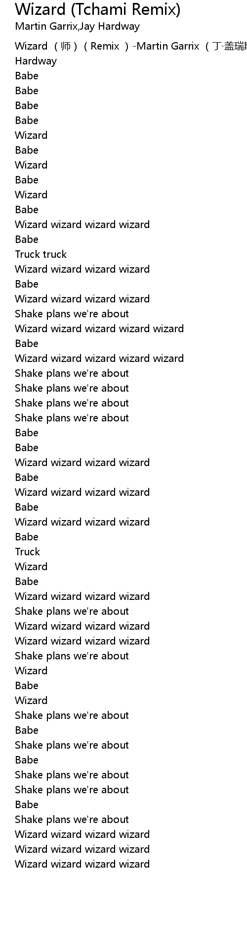 | [00:00.00] | Wizard (师)(Remix )-Martin Garrix (丁·盖瑞斯)/Jay Hardway |
