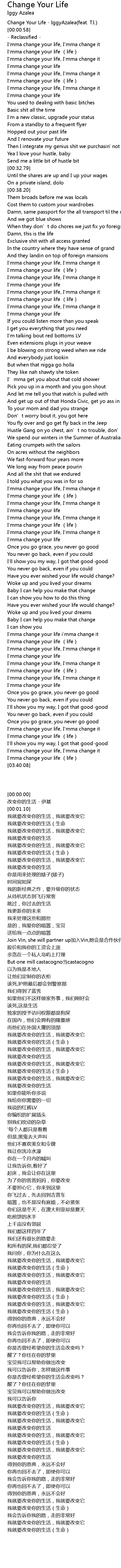 | [00:00.00] | Change Your Life - IggyAzalea(feat. T.I.) |