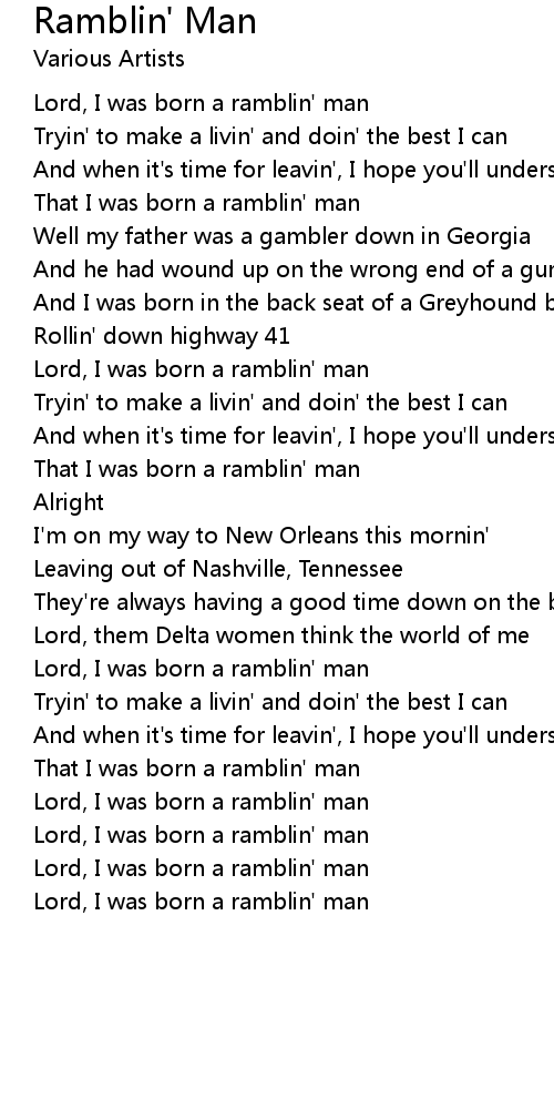 Lord, I was born a ramblin' man |