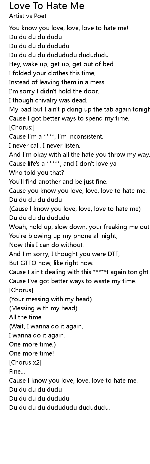 Cause you know you love, love, love to hate me. |