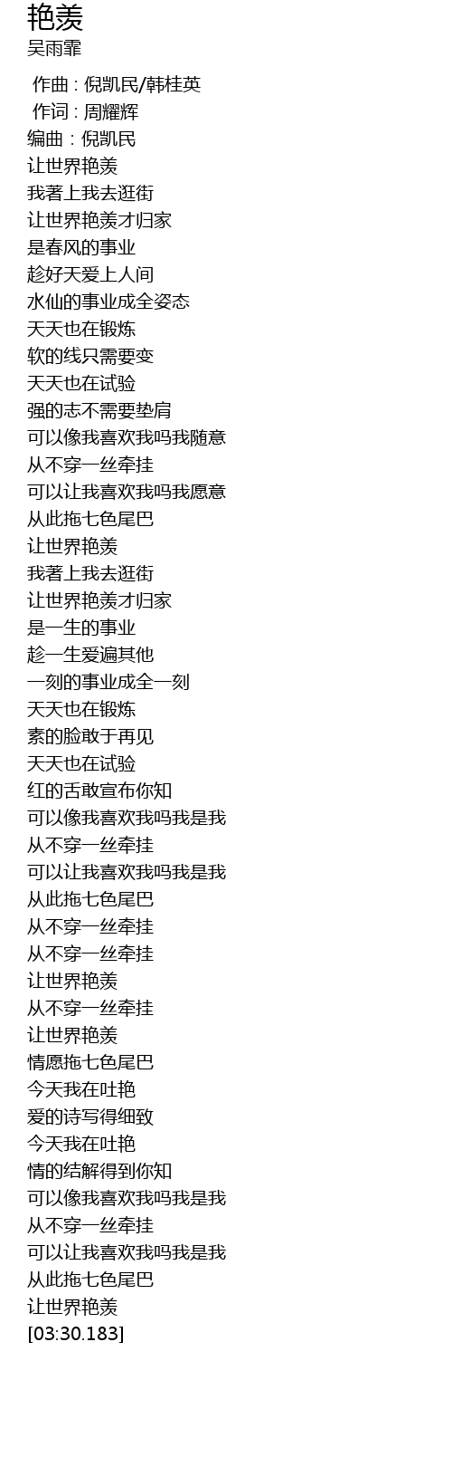 | [03:28.649] | 让世界艳羡 |