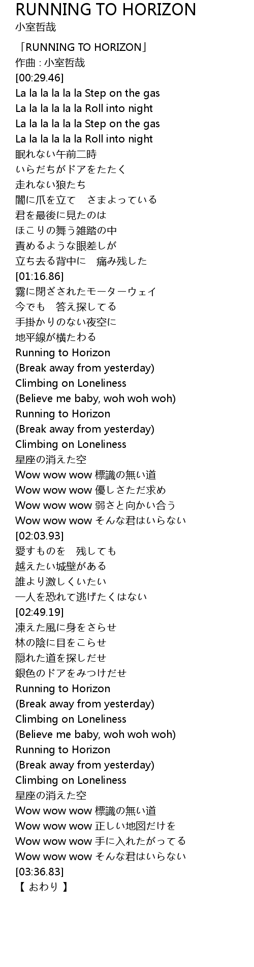 | [00:01.46] | 「RUNNING TO HORIZON」 |