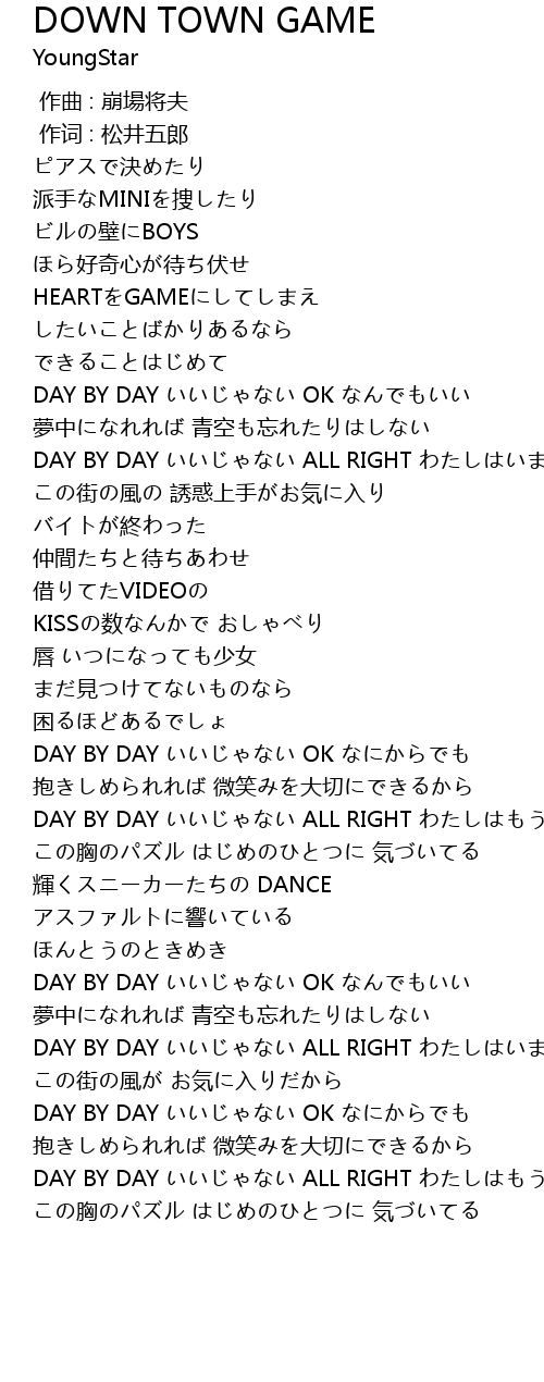 | [00:55.80] | DAY BY DAY いいじゃない OK なんでもいい |