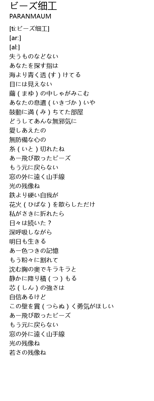 | [00:37.44] | 繭(まゆ)の中しゃがみこむ |