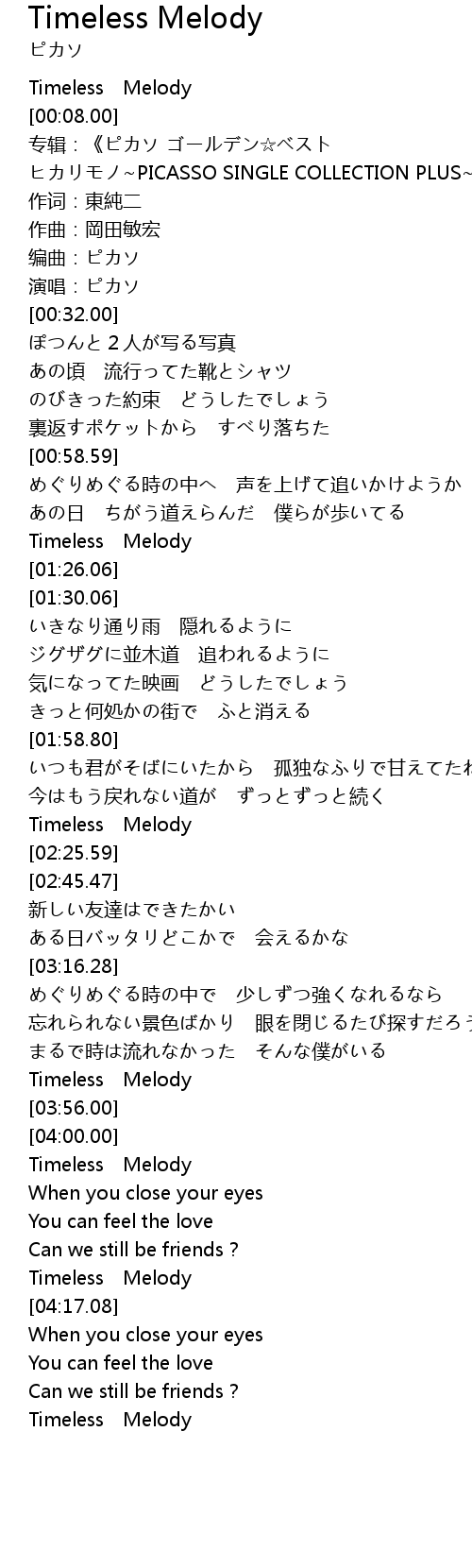 | [04:15.87] | Timeless Melody |