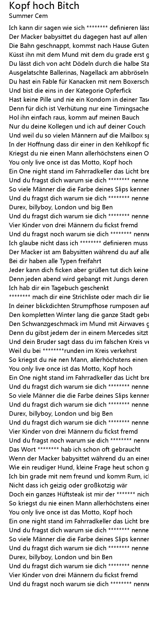| In der Hoffnung dass dir einer in den Kehlkopf fickt | |
