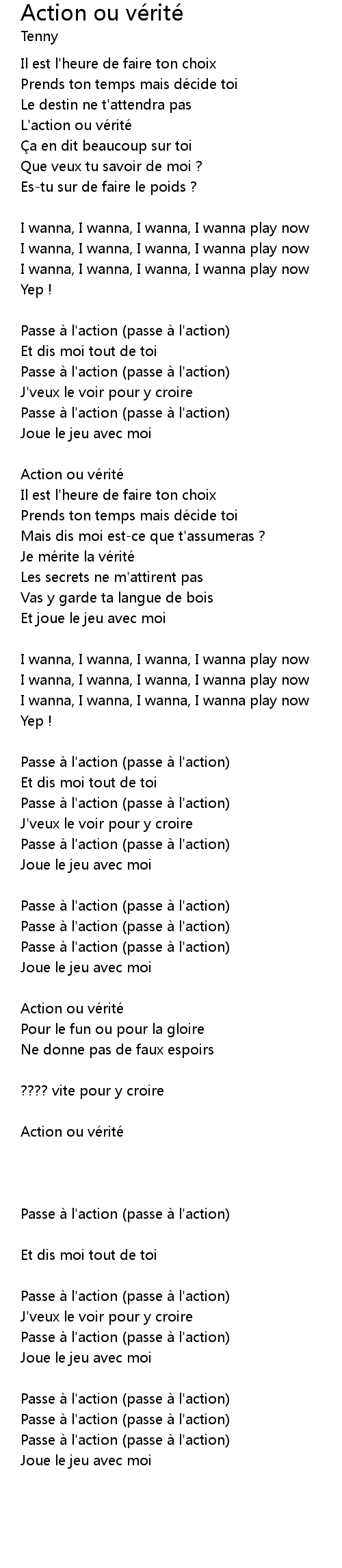 | Song | Action ou vérité |