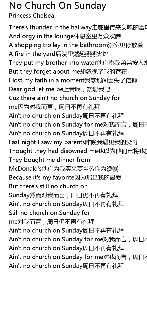 | [04:02:00] | Ain't no church on Sunday周日不再有礼拜 |