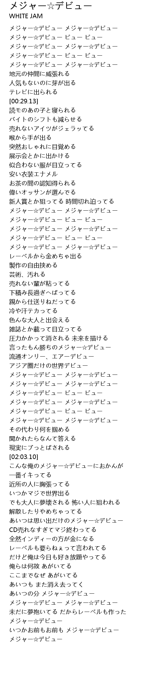 | [01:46.93] | メジャー☆デビュー ビュー ビュー |