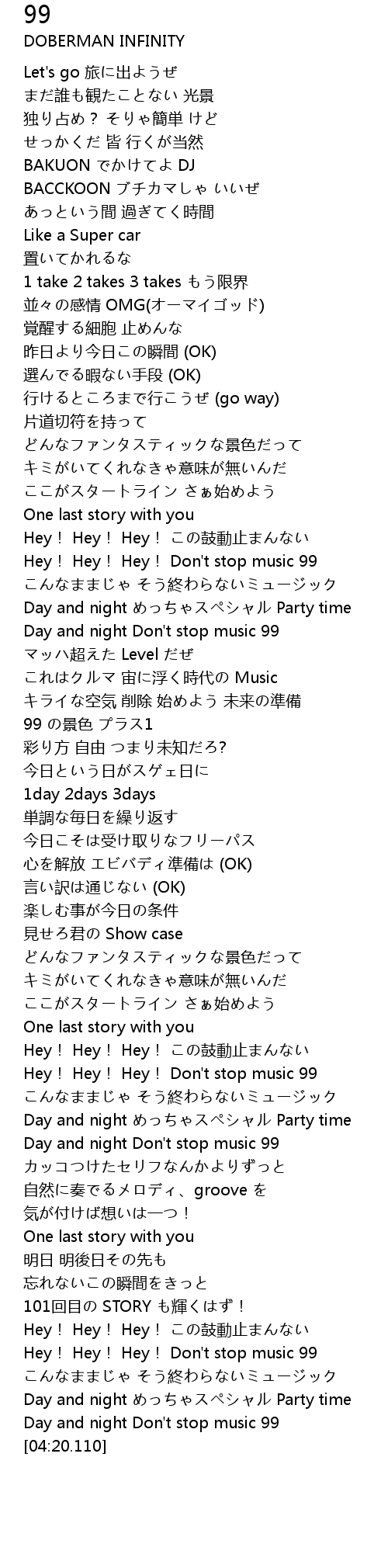 | [02:55.750] | Day and night めっちゃスペシャル Party time |