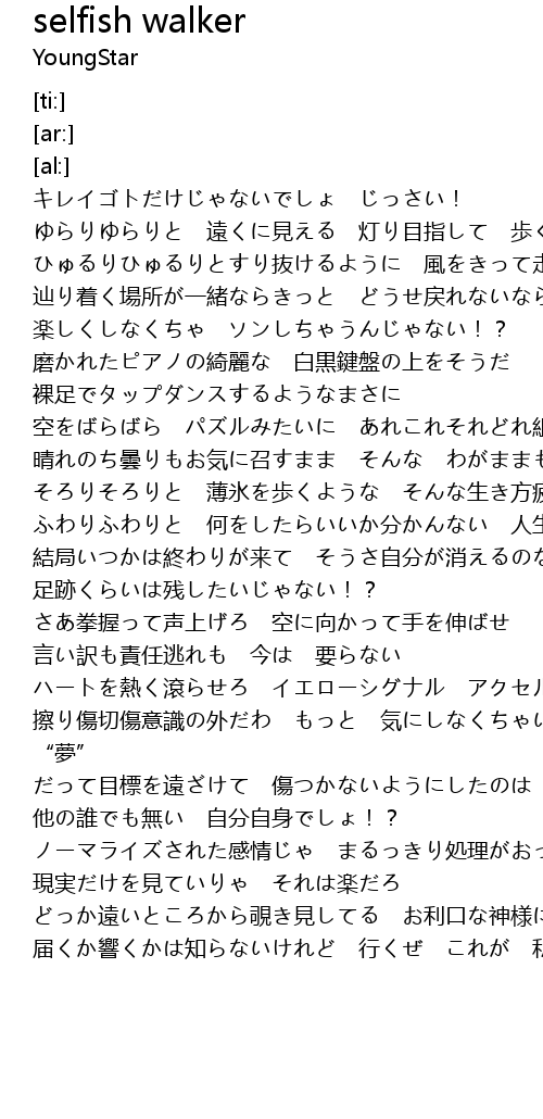 | Song | selfish walker |
