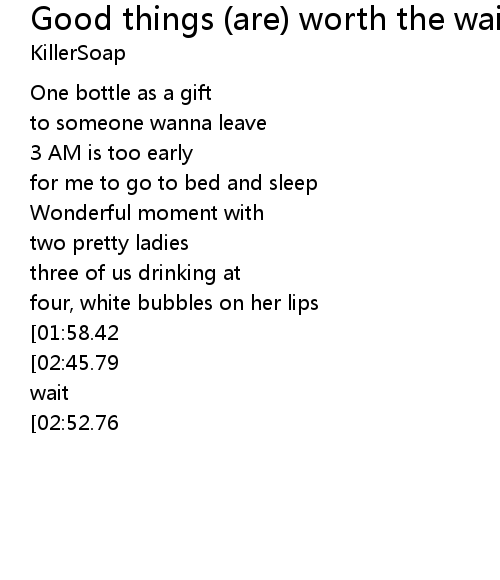 You know, Good things (are) worth the wait |
