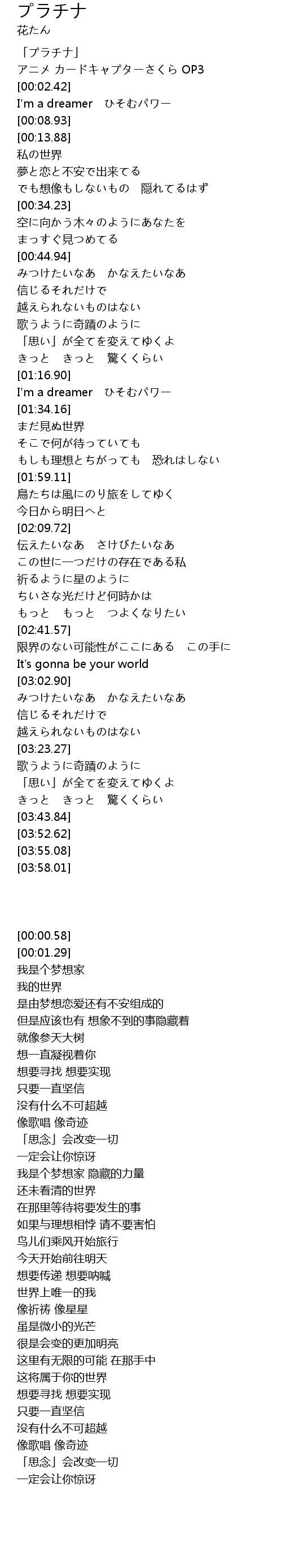 | [00:01.29] | アニメ カードキャプターさくら OP3 |