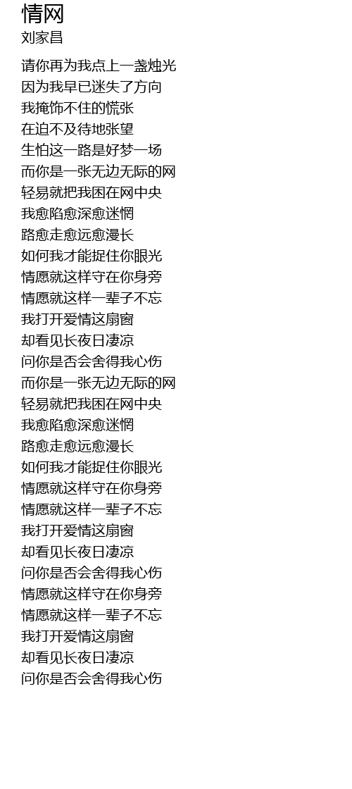 | [00:40.16] | ér nǐ shì yī zhāng wú biān wú jì de wǎng |