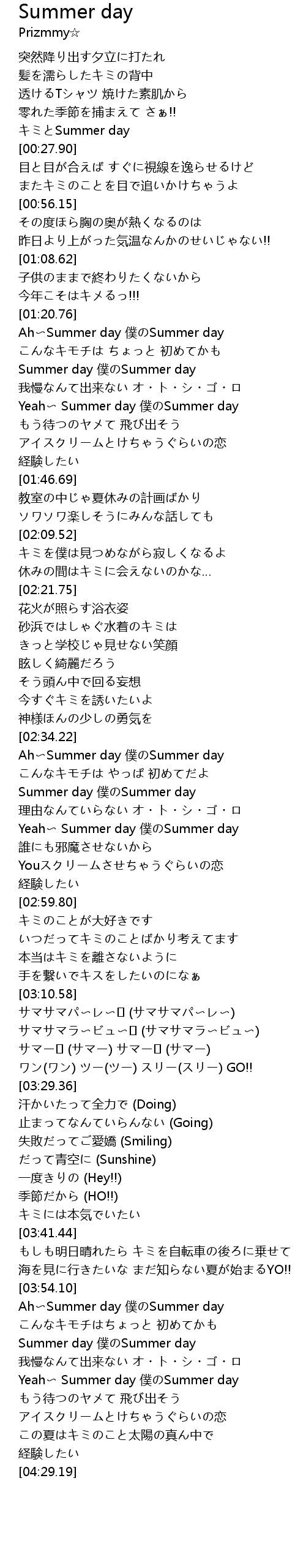 | [03:55.33] | Ah〜Summer day 僕のSummer day |